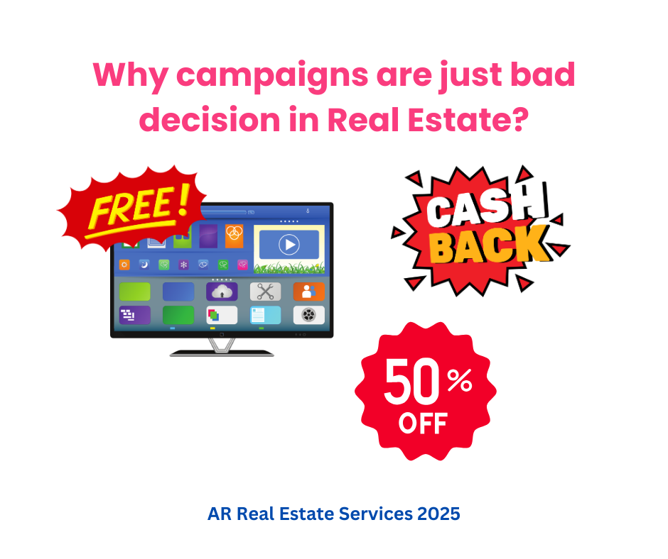 Cash-back offers and free appliances are often just added into the property price as package deal.